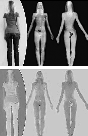 Os scanners corporais mostram os órgãos sexuais das pessoas. As imagens quando invertidas mostram claramente quase como uma foto nua da pessoa sendo escaneada (veja imagem ao lado). Apesar da insistência pelas autoridades de que estes aparelhos não teriam disco rígido ou seriam capazes de armazenar ou transmitir as imagens, diversos episódios mostram que isto não é verdade.